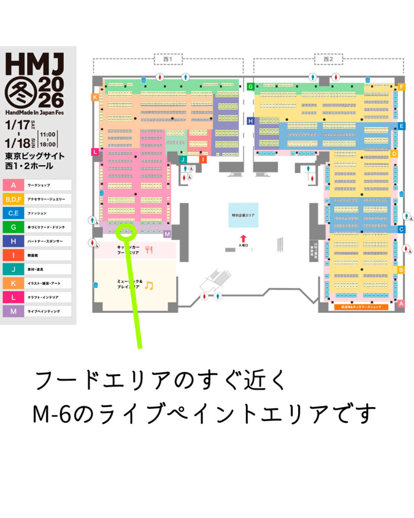 ブース番号はM-6 ライブペイントエリアです。